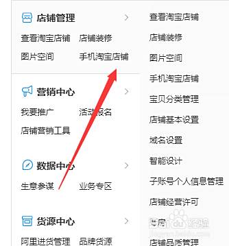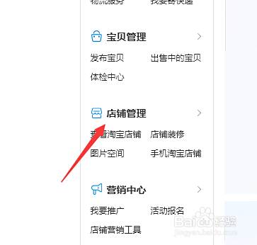 然后在淘宝商家的后台左侧找到“店铺管理”
