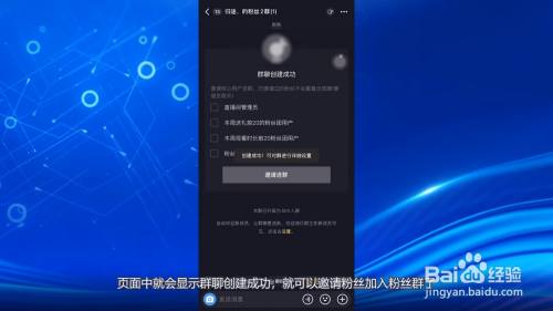 页面中就会显示群聊创建成功,就可以邀请粉丝加入粉丝群了。