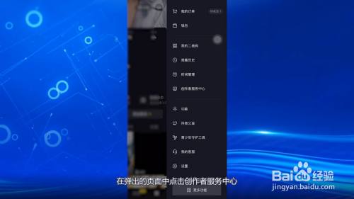 进入抖音个人中心页面,点击上方三个横杠,在弹出的页面中点击创作者服务中心。