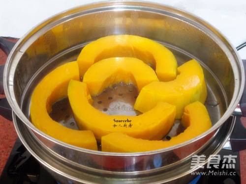 1南瓜去皮,去瓢,切长条,热锅,隔水蒸熟;PS:做馒头不需要这么多南瓜,多余做了其他美食。