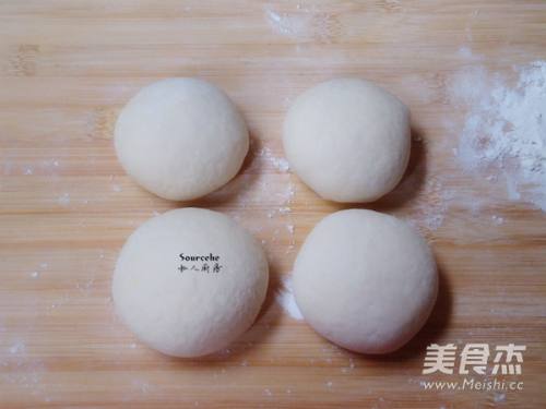 4发酵好的面团,揉、排气,再次揉成光滑的长条,各分四个小面团,揉光滑;