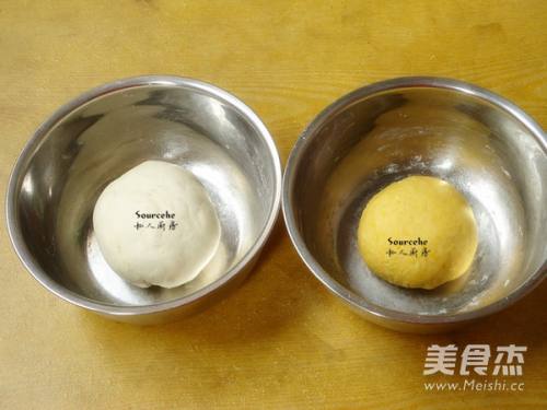 3二种面团盖盖子,分别静放让其发酵至原来二倍大;