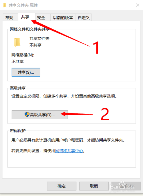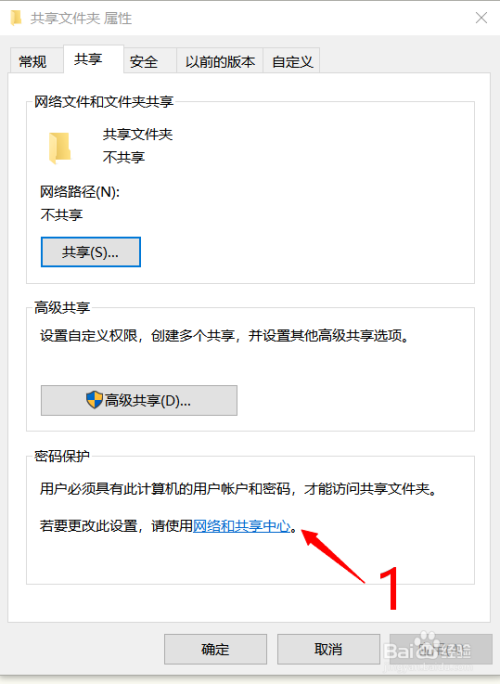 点击‘共享’,然后再点击‘高级共享’。直接来到如图所示界面。