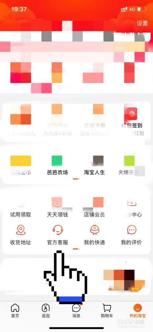 在之后进入的我的淘宝页面,找到上方官方客服选项,点击进入。