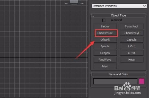 选择chamferbox命令,在顶视图创建一个chamferbox物体,如图所示: