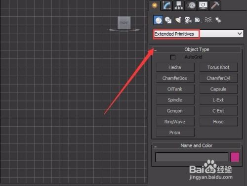 在create选项找到geometry选项,在geometry选项下的模式切换框里选择extended primitives 选项,如图所示: