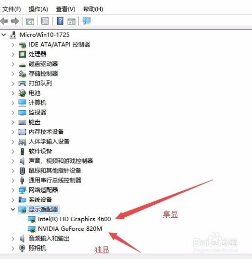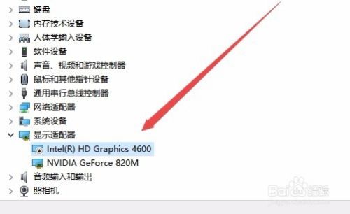 点击“显示适配器”前面的展开按钮,查看集成显卡与独立显卡的驱动是否正常。同时找了集成显卡的驱动程序。