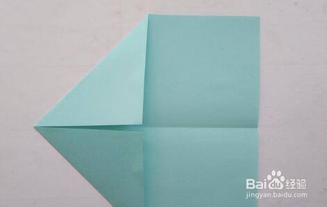第二步,将正方形彩纸两边对折,之后展开来。