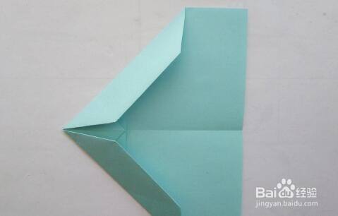 4、沿折痕将上面的图形向下折,后面的图形也向下折,整理一下,这样纸飞机将折好了。
