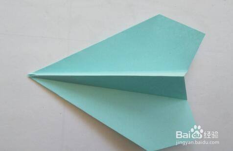 第七步,沿折痕将上面的图形向下折,后面的图形也向下折,整理一下,这样纸飞机将折好了。