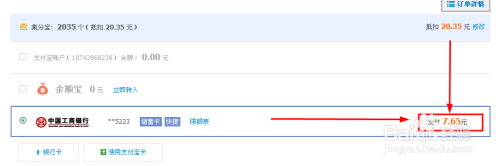 这些天在网上赚了一些集分宝,一共有两千多个,想着应该怎么用掉,于是就在网上买了个东西,使用集分宝抵扣现金,因为都知道集分宝虽然是虚拟货币,但买东西的时候是可以当现金使用的。但是物品稍微有点贵,集分宝不够使,这个时候怎么办呢?接下来分享的就是这个。