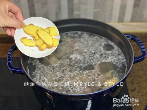 牛肉脊用冷水煮滚,加入姜片和料酒,煮滚后取出
