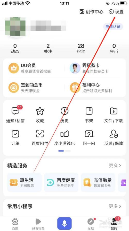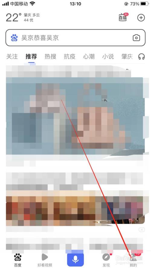 首先,我们打开手机的百度软件,进入后,点击右下角我的按钮;