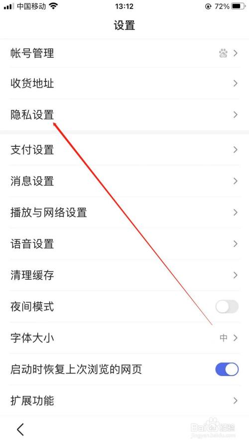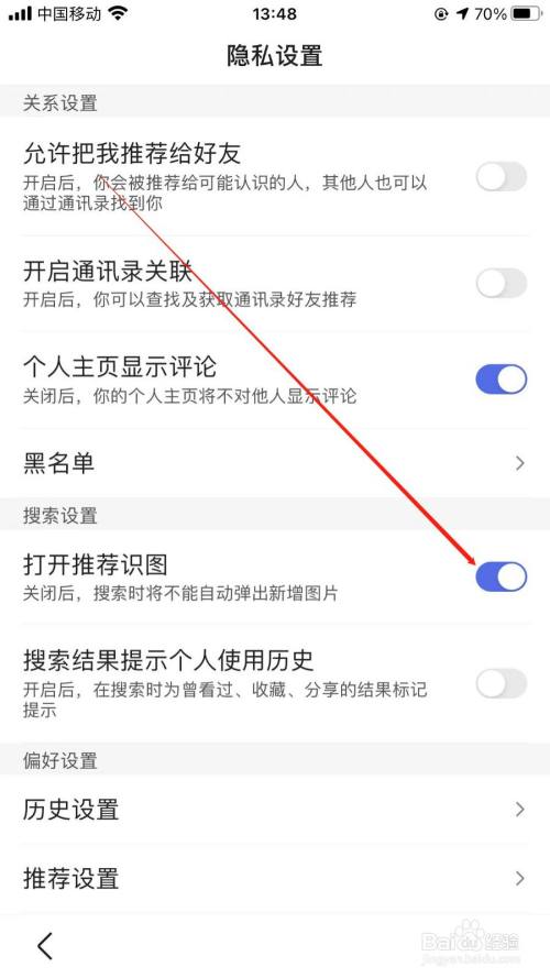 进入隐私设置页面,我们找到并点击打开推荐试图开关按钮即可。