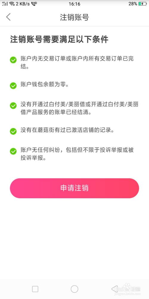 最后满足相应的条件就可以注销蘑菇街,如下图所示。