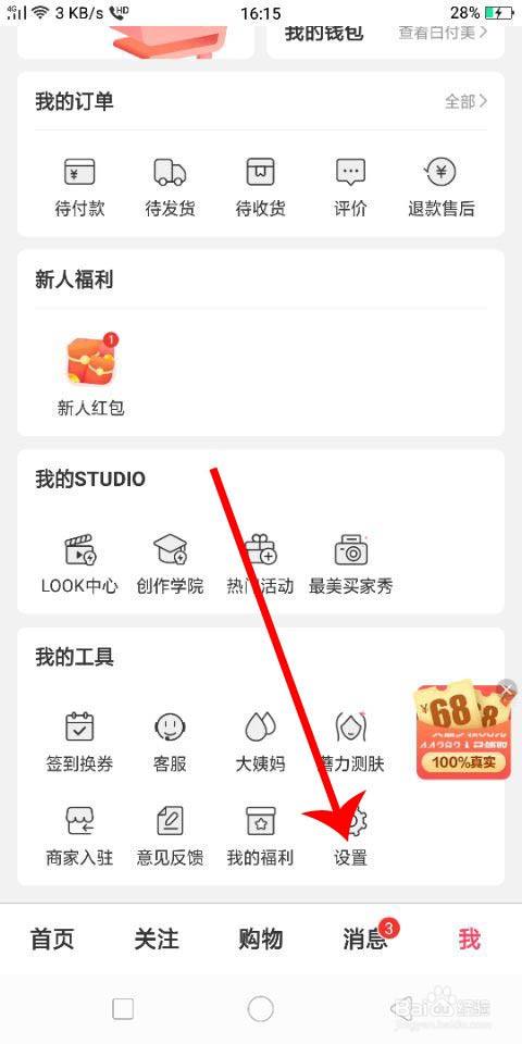 打开【蘑菇街】以后点击右下角的【我】,如下图所示。