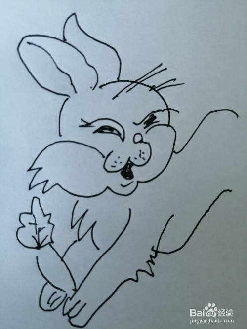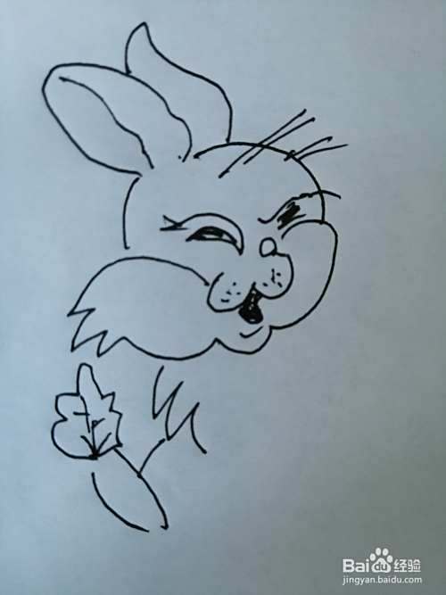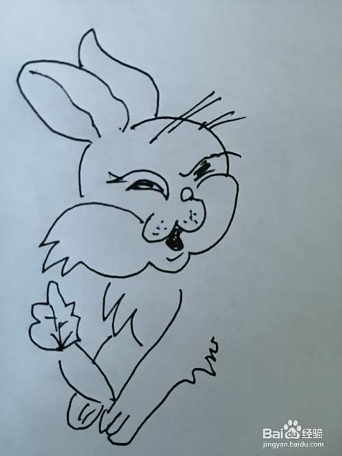第六步,在可爱的小兔子的头部下面画出一个胡萝卜,注意胡萝卜的位置。
