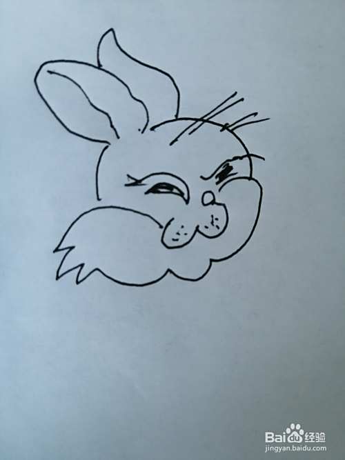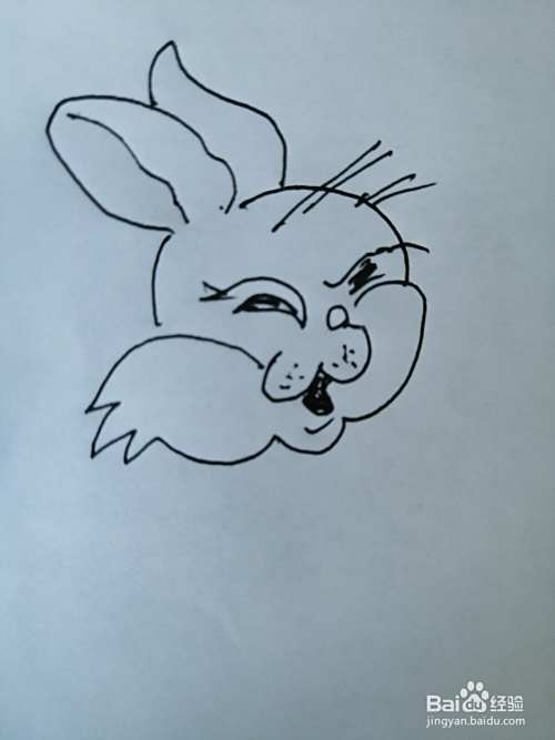 第五步,在可爱的小兔子的鼻子下面画出小嘴巴,注意嘴巴细节的画法。