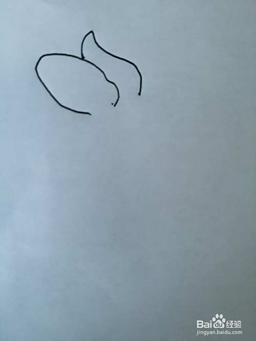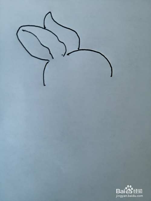 第一步,我们先把简笔画可爱的小兔子的两只长耳朵画出来,注意耳朵里面纹路的画法。