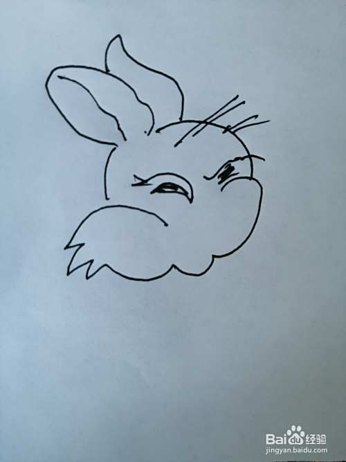 第二步,接着在可爱的小兔子的耳朵下面画出小兔子的头部轮廓,注意细节的画法。
