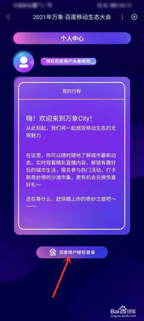 参加万象大会活动时需要登录百度帐号,下面将介绍万象大会小程序登录百度帐号的方法。