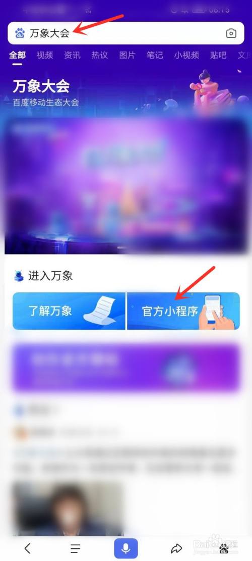 打开百度APP,搜索“万象大会”,打开“万象大会”官方小程序。