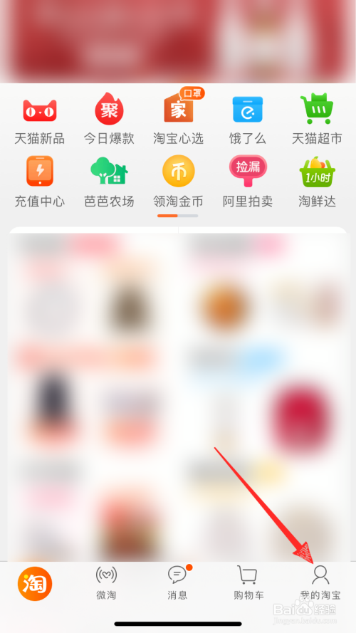 首先需要先打开手机上的淘宝app,进入软件后再点击右下角的“我的淘宝”页面。