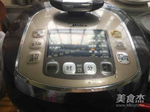 6盖上盖子,电压力锅调到“稀饭”功能键,开始煲汤。