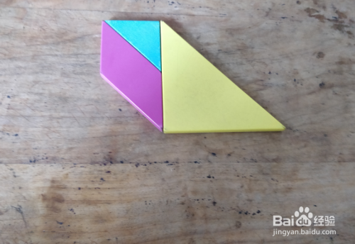 摆上黄色三角形,放在平行四边形右侧挨着,如图。