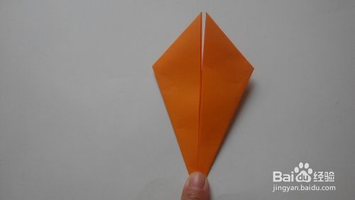 将下方这个角沿中间折痕折叠,另一边同样,如图。将折纸对折,如图,不要对折反了。