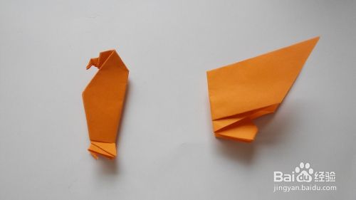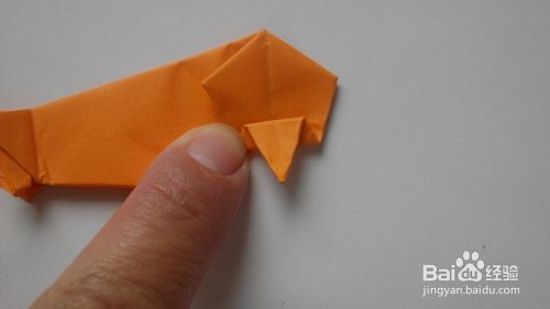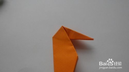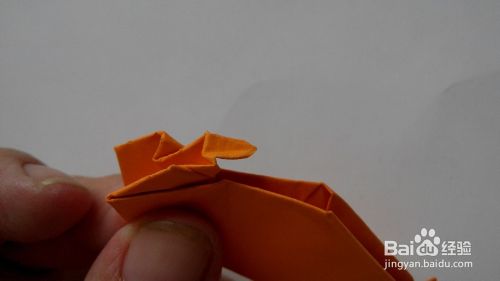 将下面的小角再折一点点,不要全部折进去了,这是老鹰的瓜子。另外一边一样的折法,老鹰的瓜子部分就完成了。