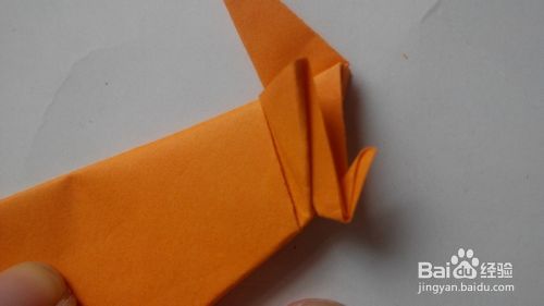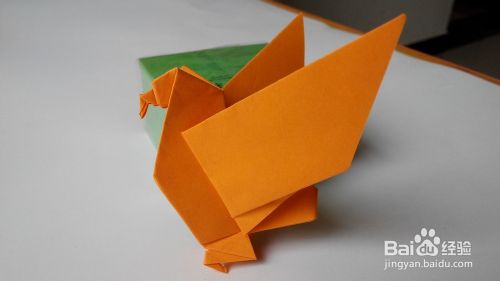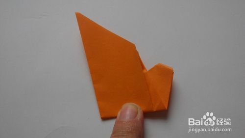 将这个小角往里折一下,折出老鹰的嘴来,如图,老鹰的身体部分就折好了。