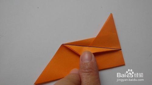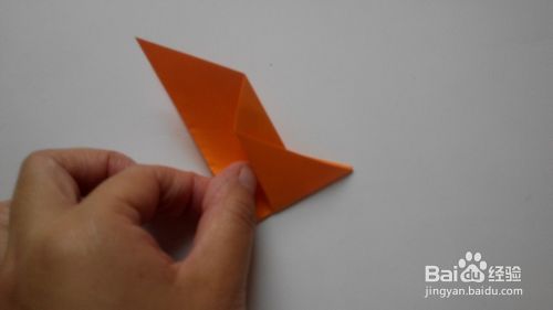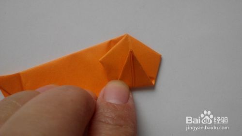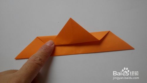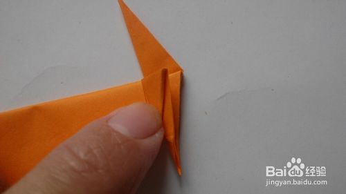 折好的角再打开,将小三角往下折。如图,再折过来。
