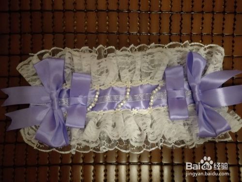 然后把珠子放在中间,用Q环把珠子放在两个花蕾丝带的中间