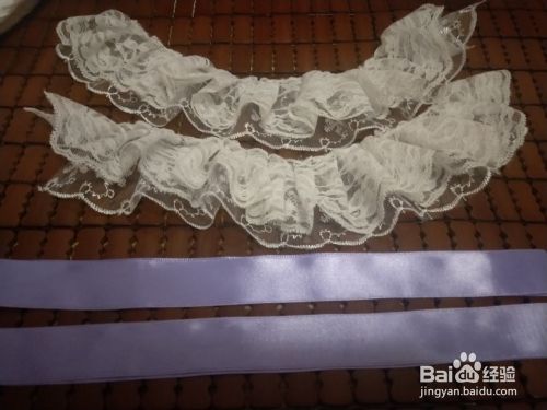 把两种花边缝在一起,注意打折,否则是直的。不,中间的缎带必须是两层的。有点厚,
