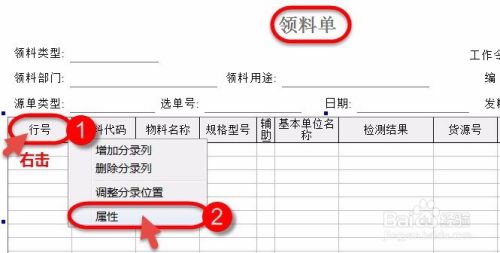 鼠标右击表体【行号】,从弹出的快捷菜单中点击【属性】