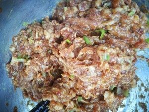 猪肉馅放入水搅拌粘稠,放入所有调料,搅拌匀,放葱花、姜末在肉馅上,锅里热少量油,浇在葱花上,再次搅拌均匀,肉馅调好了,放入准备好的土豆碎,拌匀(咸淡自己尝一下,舔一舔,吐掉,蒸咸煮淡)