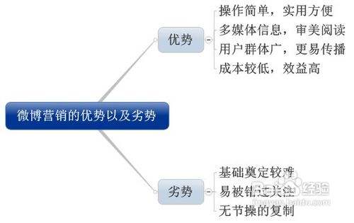 随着互联网迅速崛起以及发展,互联网新型产业也在高速发展,微博的利用得到了数百家企业品牌的关注,微博成为企业与消费者进行面对面的沟通和交流的纽带,同时企业还可以在微博上组织宣传活动,发布促销信息。通过这些方法对企业品牌形象的树立有很大帮助。微博已经成功作为一种新型的传播媒介,逐渐深刻影响着社会生活,成为了网民关注身边焦点事件的工具,微博的使用率越来越大,不仅获得了数百家企业品牌的进驻,更加诱惑者无数的网名朋友,成为了他们生活中不可缺少的一份子。在这种形势下,微博营销的优势以及劣势已经充分体现出来,具体指那些方面呢?