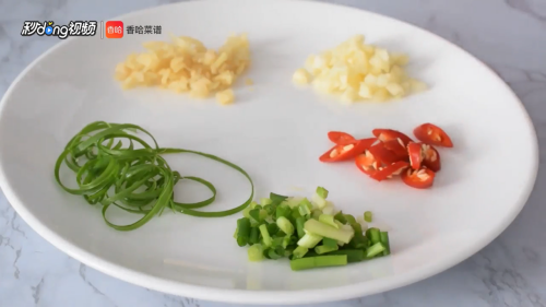 姜蒜切末,葱切葱花,辣椒斜切。