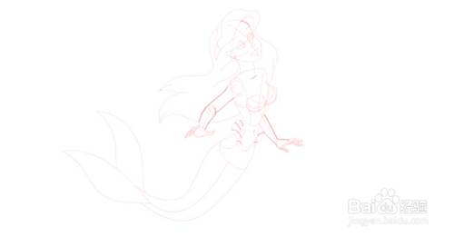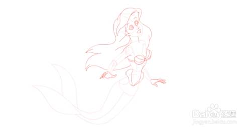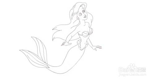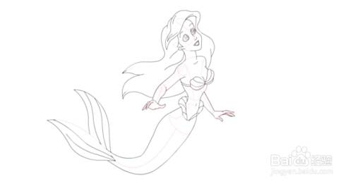 以迪斯尼人物为基础,勾勒出美人鱼的形象。