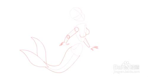 勾勒出美人鱼的线框和姿势。