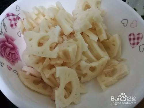 将西兰花洗净,并切成大小均匀的块状,莲藕也洗净切成薄片备用。