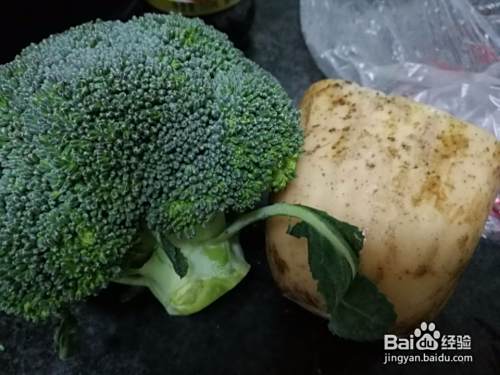 首先,我们将西兰花和莲藕准备好,西兰花去根,莲藕削皮。