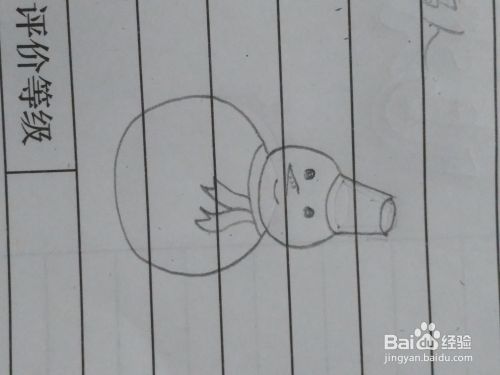 在雪人的脸上,我们画出两个黑点,作为他的眼睛。一个长长的小尖角。作为她的鼻子。