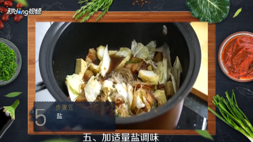 5加入适量盐调味,盖上锅盖炖5-6分钟,撒上一些香菜即可出锅。