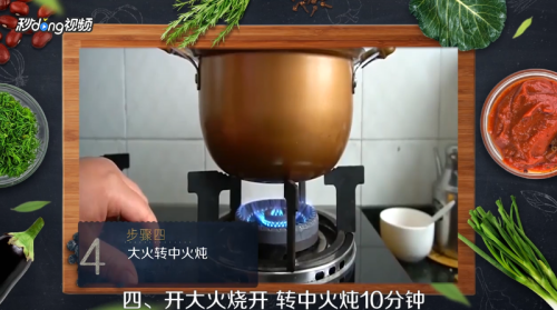 4开大火烧开,转中火炖10分钟,放入豆腐块、白菜和泡好的粉条。