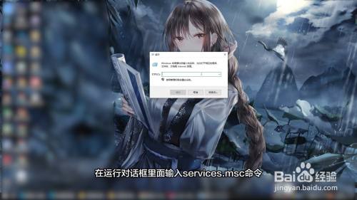 在运行对话框里面输入services.msc命令,点击确定。