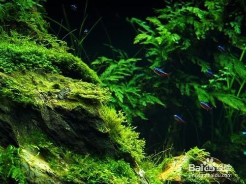 先说"莫丝+沉木"型,MOSS属于苔藓类水生植物,无花无种子有假根,据研究,MOSS的进化史长达四亿四千万年。MOSS种类很多,分类和名称还存在争议,常见的有三角MOSS、柳树MOSS、爪哇MOSS、松树MOSS、圣诞MOSS、珊瑚MOSS、火焰MOSS等,非常漂亮。大多数MOSS,生长要求并不苛刻,可以在光照较弱、无CO2、营养不丰富的中性水中成活,但你一定不要以为MOSS就适合这样的环境,相反,MOSS和几乎所有水草一样,在较强的光照、有CO2、养分充足的弱酸性软水中才更容易展现出自己美丽的姿态。