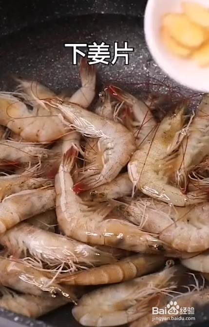 基围虾冷水下锅,放入姜片,料酒,煮熟后捞出。
