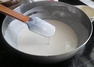 加入1.5杯常温水,调成不是太粘稠的面糊,搅拌至无颗粒。
